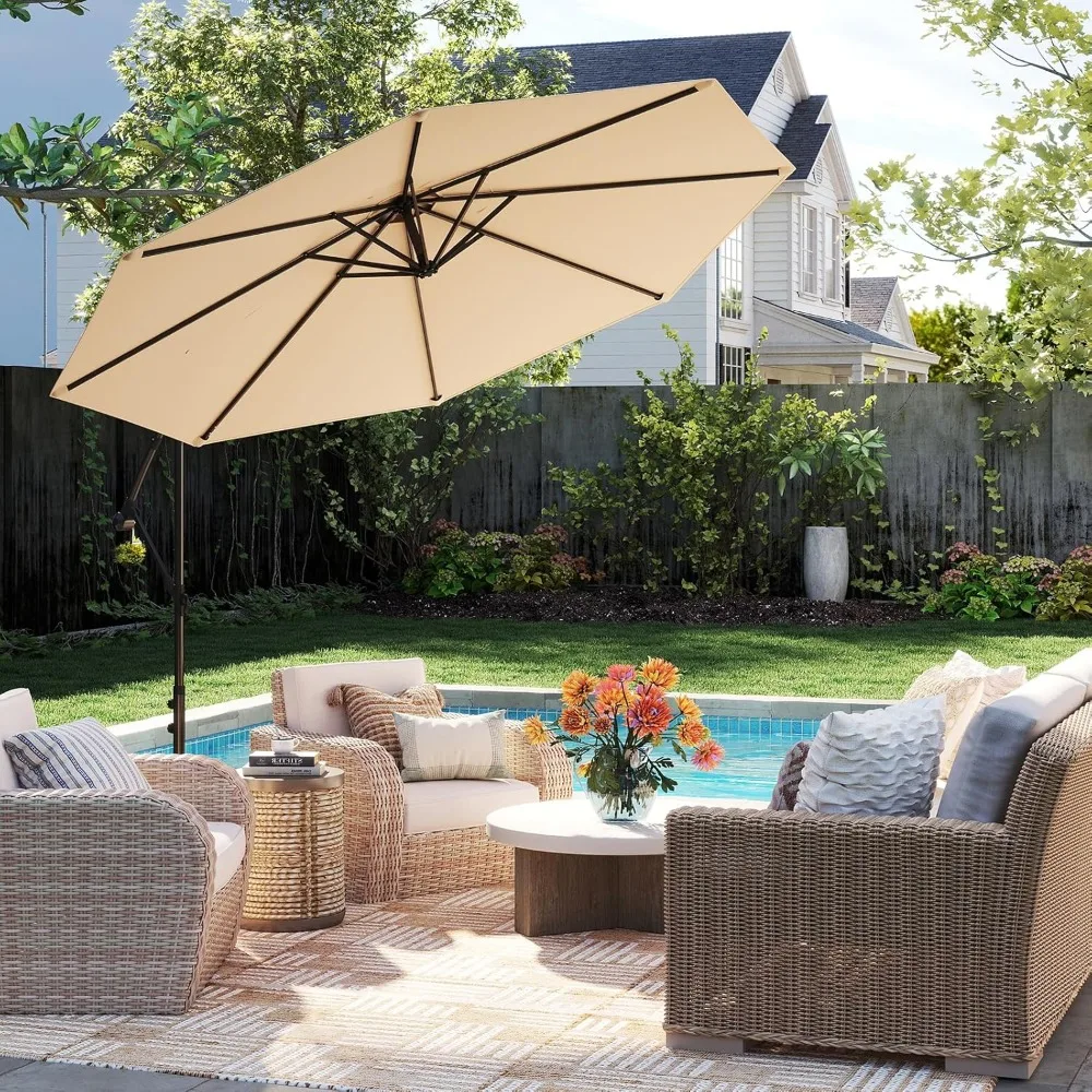 10 FT Patio Umbrella, Offset Cantilever Outdoor Umbrella with Cross Base, Crank, 8 Ribs, for Garden, Poolside and Backyard
