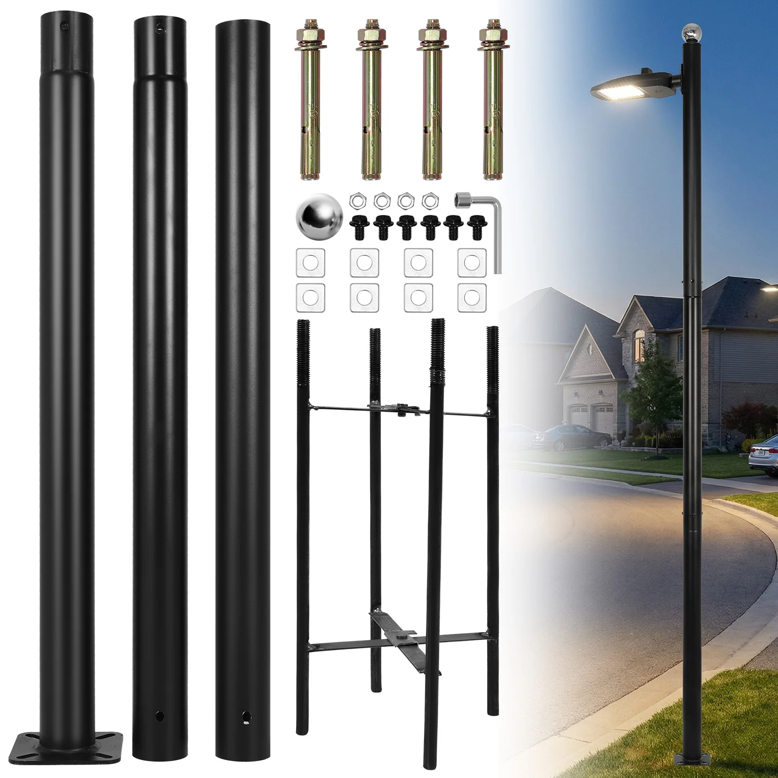 10Ft Tall Street Light Pole Weather-Resistant Courtyard Light Pole Heavy Duty Street Lamp Post for Parking Backyard Patio Yard