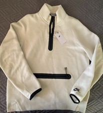 The NWT Nike Men's Tech Fleece 1/2 Zip Sweatshirt in Beige, size Small, is a stylish and versatile pullover designed for athletic performance. Made from a blend of polyester and cotton, this sweatshirt features a collared neckline, long sleeves, and the ic...