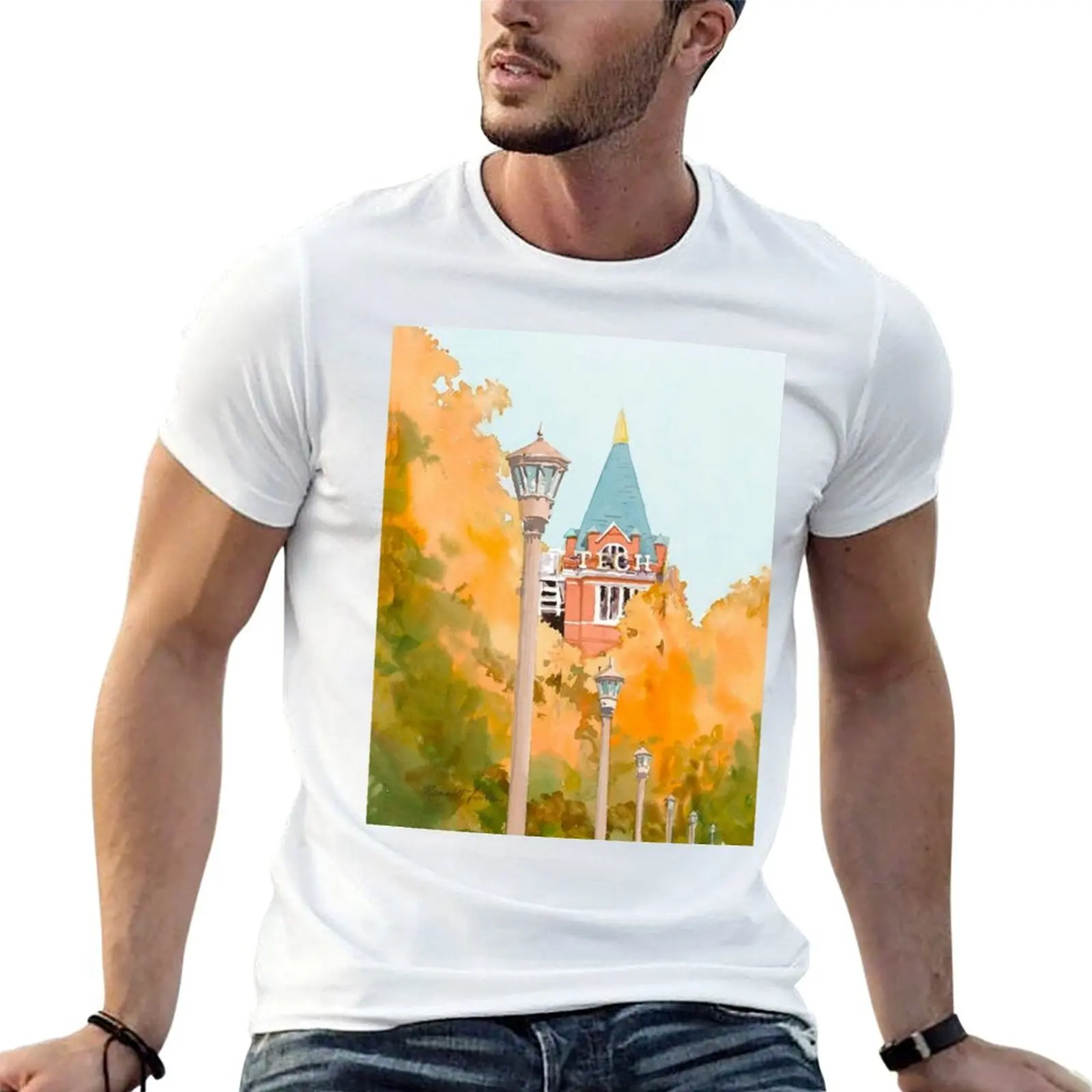 Tech Tower Watercolour T-Shirt t shirts for man cotton soft man t shirts for men casual man graphic t shirt T-Shirt