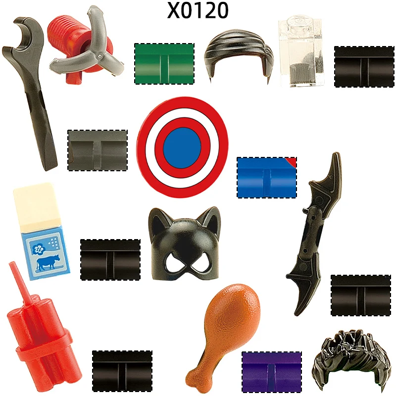 The X0120 Weapons Pants Hair Parts Action Figures Milk Spanner Shield Hook Dart Cloak Model Blocks MOC Bricks Set Gifts Toys https://www.forwardshopper.com/compare/detail/axs/1005012080794543?k=Toys from $2.21 See Details