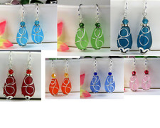 Materials: 10X15MM Frosted Teardrop-Shaped cultured Sea Glass Beads, silver wire, 4mm glass beads, Hypoallergenic Silver Plated Ear Wires. Don’t wear it in the pools, the ocean or in hot tubs. Keep it in a dry place.