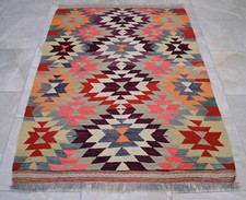Condition : Used - in Very Good condition. This rugs is primitive weaving, therefore, not perfectly rectangular. Material : The original rug is made of wool on cotton. Origin: Western Anatolia.