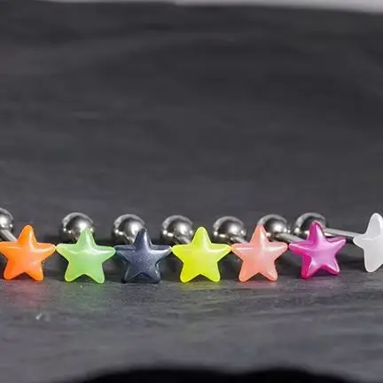 New Star Love Lip Ring Stainless Steel Luminous Ball Horseshoe Ring Color Resin Pentagram Earbone Ring Piercing Jewelry