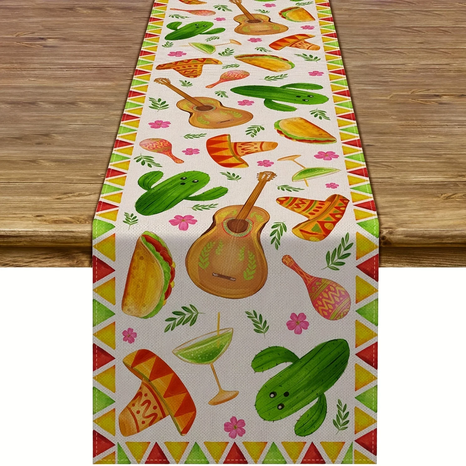 1 pc Linen Cinco de Mayo Mexican Themed Table Runner for Kitchen Dining Table Party Events to Add Vibrant Festive Mexican Style